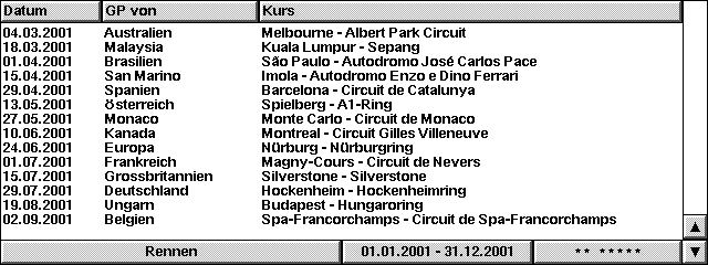 3) Funktionsweise Prinzipiell handelt es sich um ein Datenbanksystem, das die Rennen mit den Ergebnissen über eine 1:n Relation verknüpft. Wem das jetzt gar nichts sagt, braucht keine Panik zu bekommen, es werden keine SQL Kenntnisse benötigt, die Einstellmöglichkeiten bei den Filtern sollten selbsterklärend sein.